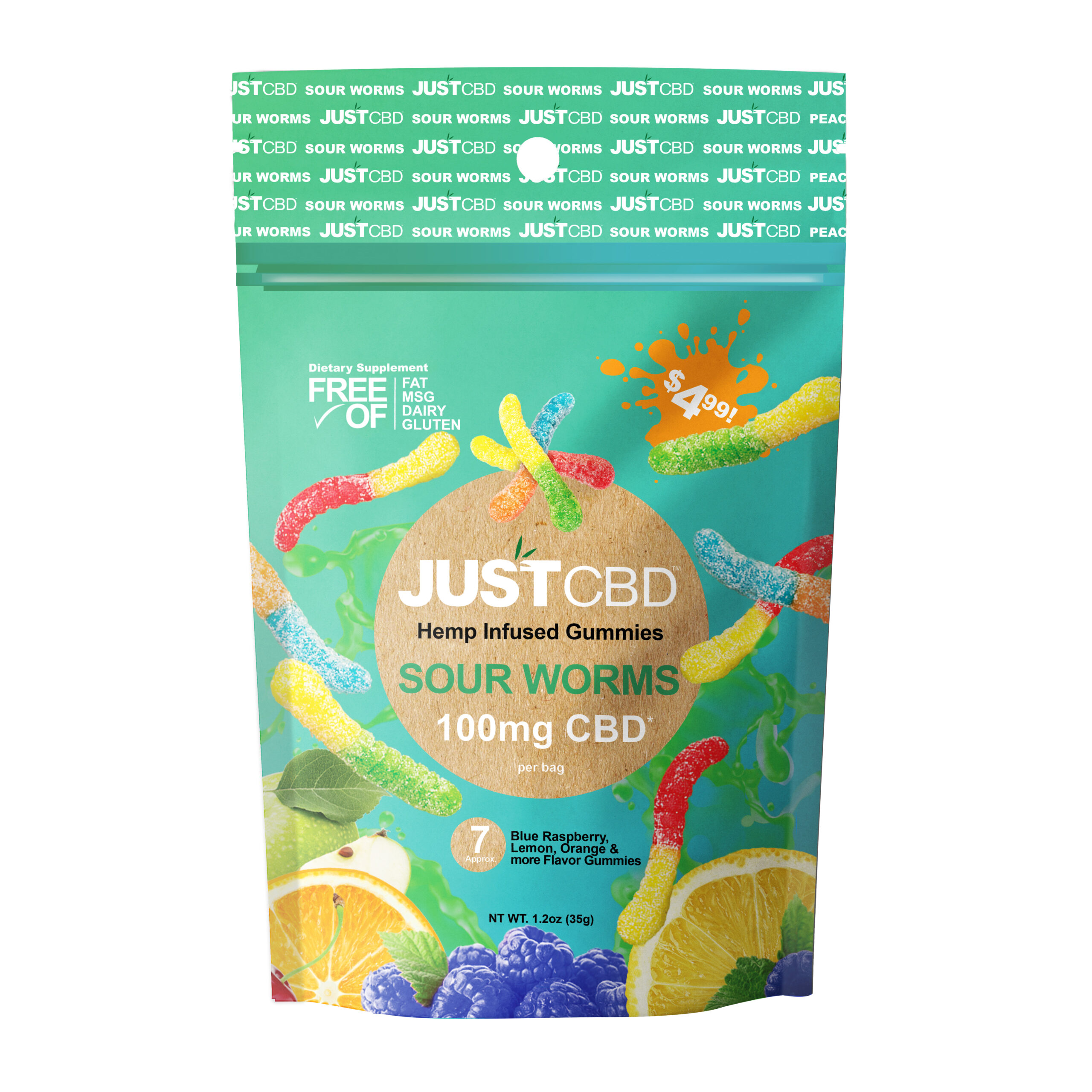 Corn Syrup (From Corn), Sugar (From Beets), Water, Gelatin, Lactic Acid, Citric Acid, Natural and Artificial Flavors, Fumaric Acid, Pectin (Derived From Fruits), Titanium Dioxide (Color), FD&C Yellow #5, FD&C Red #40, FD&C Yellow #6, FD&C Blue #1, HEMP EXTRACT CANNABIDIOL (CBD), COCONUT OIL.