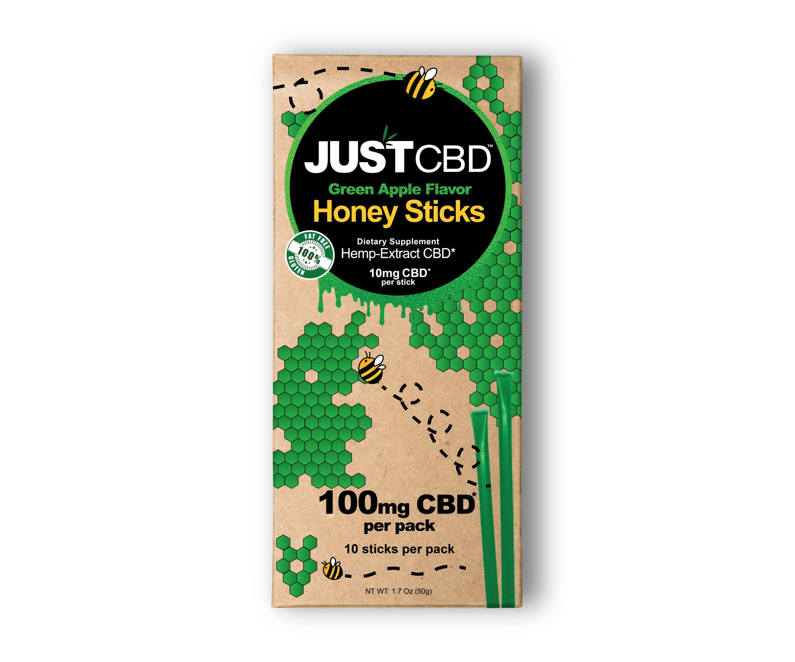 CBD Honey Sticks Green Apple 10 Pack