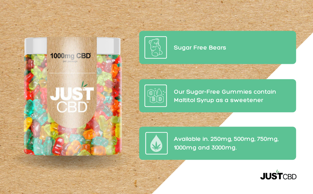We know JustCBD sugar-free CBD gummies will be your new go-to snack to stash in your desk or car. Containing absolutely no sugar or cholesterol, our expertly crafted sugar-free gummies are an all-natural snack that won’t hurt your diet. And just like our traditional CBD gummies, they pack a real punch while still tasting delicious. What are you waiting for? Enjoy the soothing, relaxing effects of CBD while not missing out on any of the flavor. We offer our sugar-free gummies in four CBD strengths, ranging from 250mg-1000 mg. Please note, JustCBD sugar-free gummies contain Maltitol Syrup as a sweetener. A small number of people may experience an adverse reaction to Maltitol Syrup, so keep this in mind when purchasing.